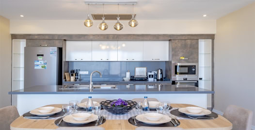 Mutfak : Modern Amerikan mutfakta yemek masası, buzdolabı, bulaşık makinesi, fırın, ocak, mikrodalga fırın, tost makinesi, yemek takımları, çatal-bıçak takımları, tencere-tava setleri ve bardaklar mevcuttur.