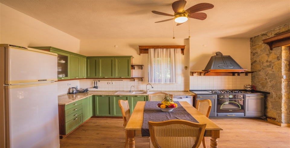 Mutfak: Açık planlı mutfak, 6 kişiye yetecek kadar mutfak malzemeleri, buzdolabı, fırın, ocak, bulaşık makinesi, çamaşır makinesi, tost makinesi, kettle ve çaydanlık bulunmaktadır..