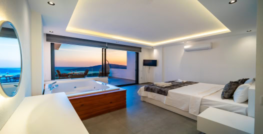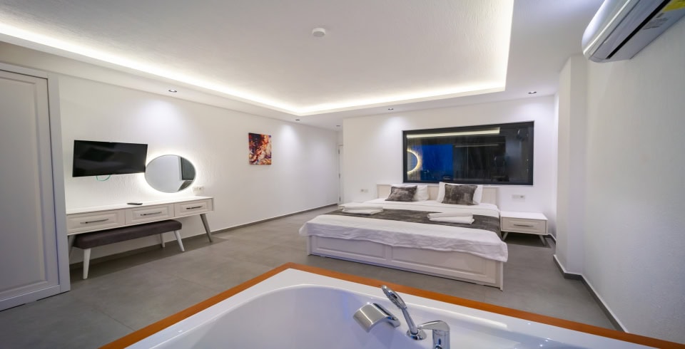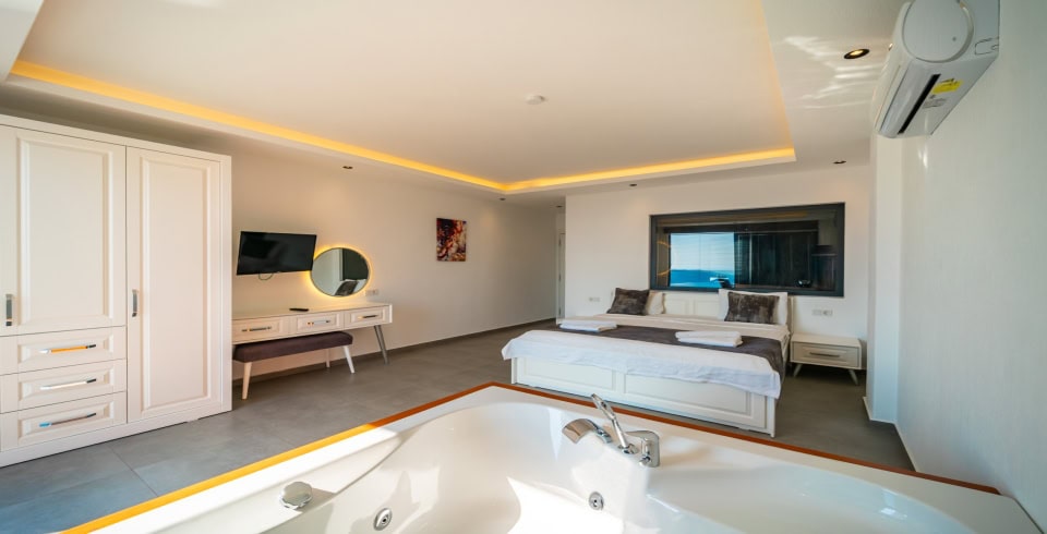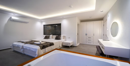 1. Yatak Odası : 1 adet çift kişilik yatak, klima, jakuzi, komodin, elbise dolabı, makyaj masası, banyo ve lavabo bulunmaktadır.