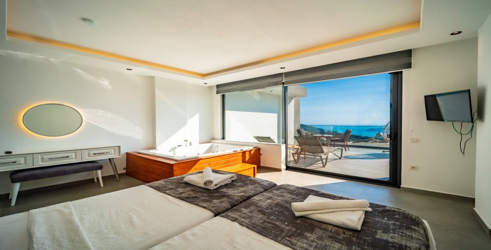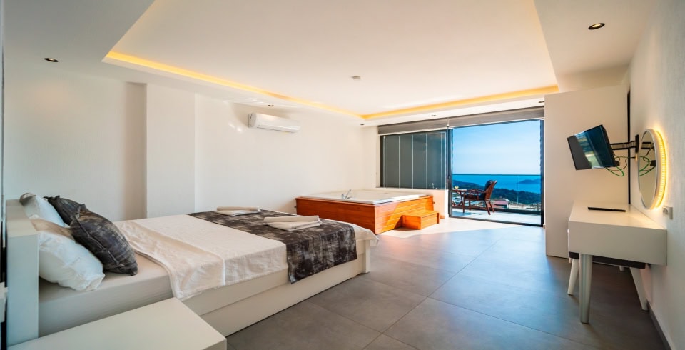 Kalkan’ın Kördere mevkiinde yer alan, yaz aylarının vazgeçilmezi olmaya hazır muhafazakar, kiralık, muhteşem deniz manzaralı villamız 2 yatak odalı 4 kişi konaklama kapasitesine sahip, hem balayı villası olarak hem de çekirdek muhafazakar ailelerimiz için tasarlanmıştır.