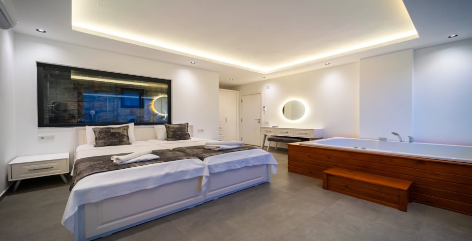 Villa Kaya Royal muhafazakar villa kategorisinde bulunmakta olup dışarıdan görünmeyen bir villadır. İnşaatı 2020 yaz ayında bitmiş olup yeni bir villadır. Villamızın ayrıca süit yatak odasında jakuzi bulunmakta olup balayı villası olarak düşünenler için son derece ideal bir seçenek olacaktır.
