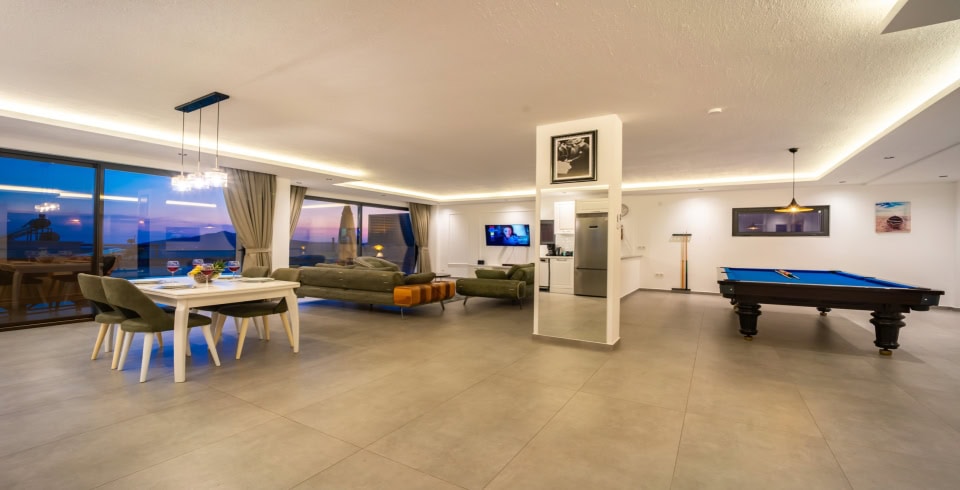 Villamızın konumundan bahsedecek olursak Kalkan Merkez’e oldukça uygundur. Market ve restoran gibi ihtiyaçlarınız için ise 5 km mesafe uzaklığındadır. Fethiye ve Kaş bölgesinde gezmek isteyenler için orta bir konumda bulunmaktadır. Büyük bir havuz terasına ve oldukça geniş bir havuza sahip olan villamız eşsiz bir deniz manzarasına sahiptir. Villamızda bilardo masası ve sauna da bulunmaktadır.