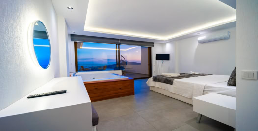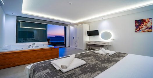 2. Yatak Odası : 1 adet çift kişilik yatak, klima, jakuzi, komodin, elbise dolabı, makyaj masası, banyo ve lavabo bulunmaktadır.
