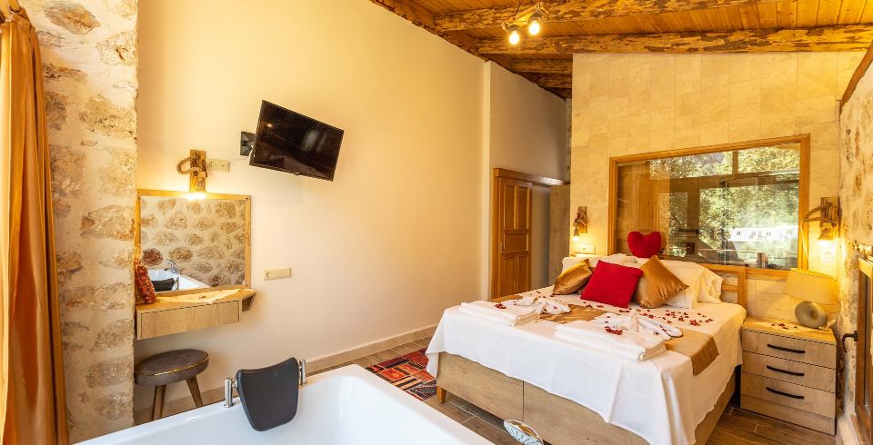 Villa Kayadibi Kalkan ulugöl bölgesinde yer almaktadır. 2 yatak odasına sahip tatil villamız 4 kişilik konaklama kapasitesine sahiptir. taş ve ahşam mimariye sahip olan villamız doğa içerisinde yer almaktadır. Havuz alanı bahçe alanı ile sizlere keyifli bir tatil ortamı sunmaktadır. Özellikle aileler için ideal bir seçenek olan Villamız muhafazakar hassasiyete sahip misafirlerimiz içinde uygun bir tatil ortamı sunmaktadır.