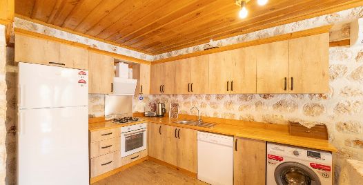 Mutfak: Villamızın mutfağında buzdolabı bulaşık makinası, çamaşır makinası, 4'lü ocak, ketıl, mikro dalga fırın, filtre kahve makinası 4 kişilik yemek takımı bulunmaktadır.