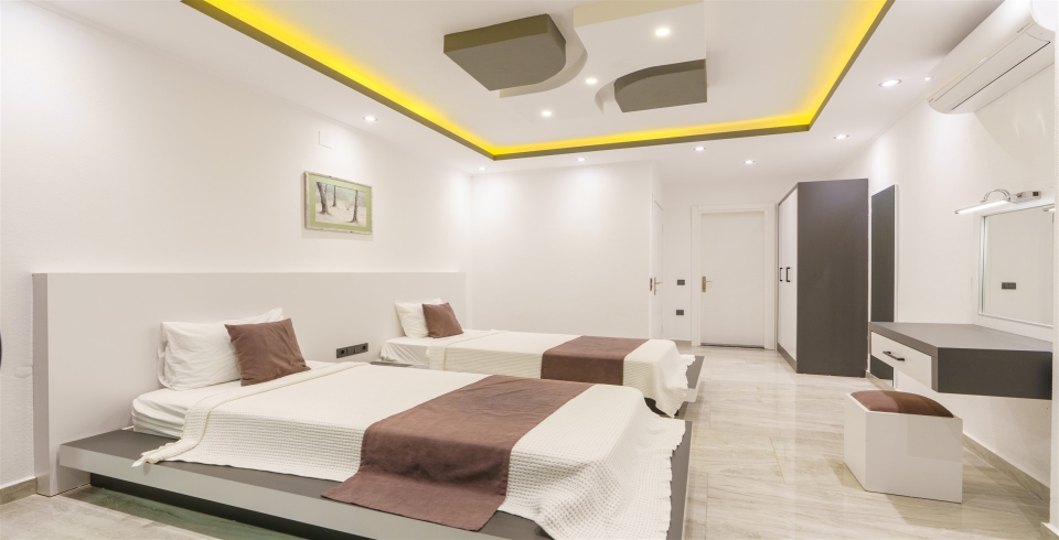 2. Yatak Odası : 2 adet tek kişilik yatak, klima, komodin, elbise dolabı, makyaj masası, balkon, banyo ve tuvalet bulunmaktadır.