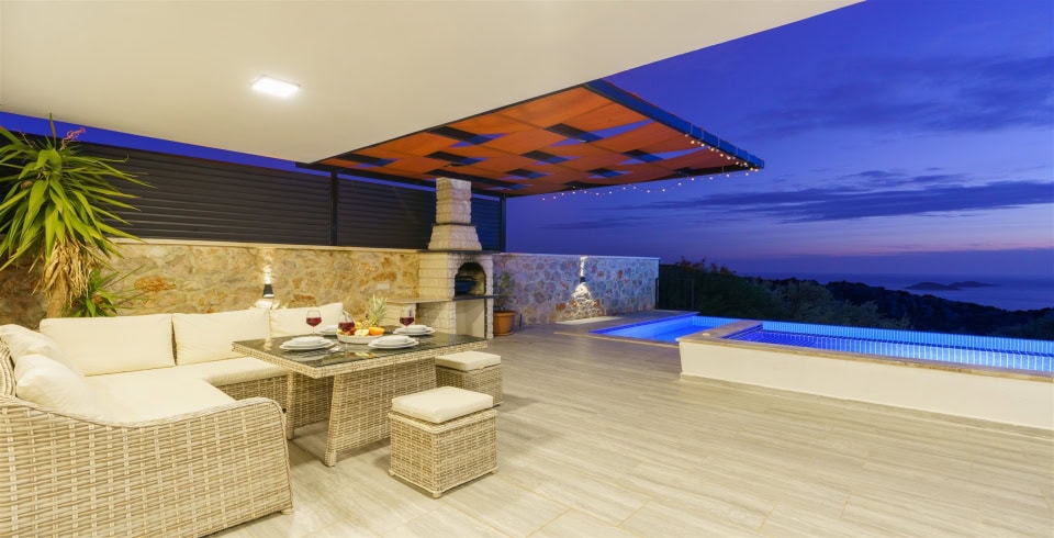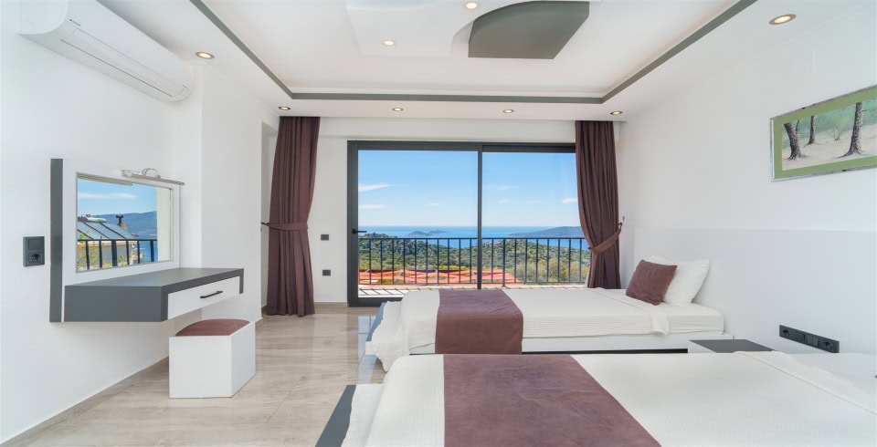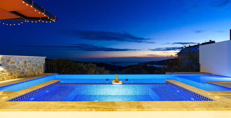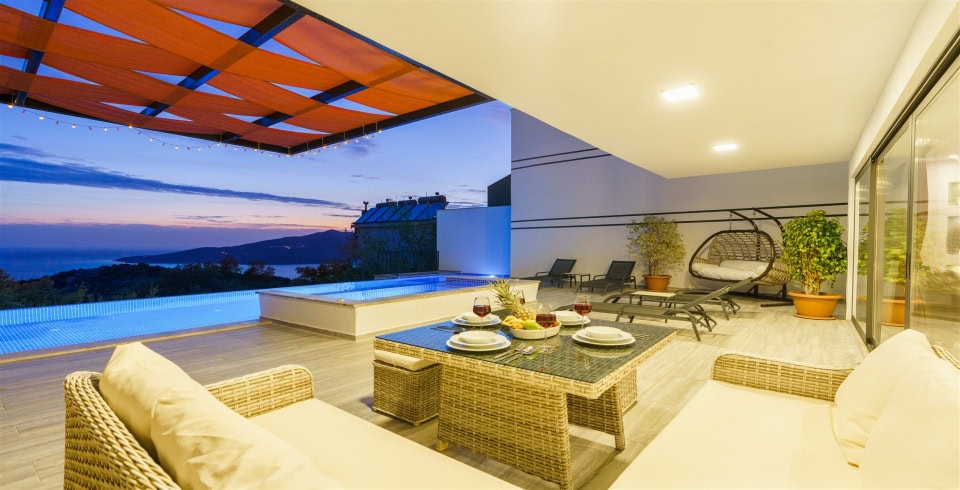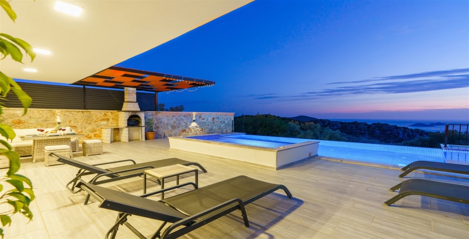 Kalkan Kördere Bölgesinde 2 Yatak Odalı 4 Kişilik Deniz Manzarasına Sahip Kiralık lüks villamızdır. Villamız 2021 yılında yapılmış olup özel yüzme havuzuna sahiptir. Kalkan merkeze ve bölgedeki plajlarımıza villamız 10 dk. mesafede bulunmaktadır. Villamızın Havuz ve havuz terası dışarıdan gözükmemektedir. Villamızda Jakuzi ve salıncak bulunmaktadır.