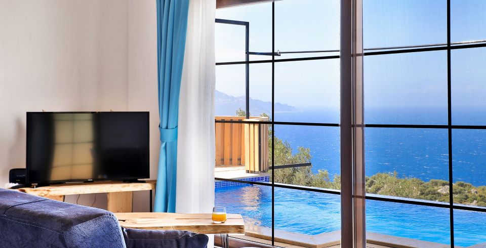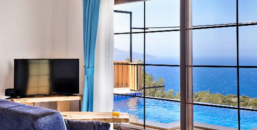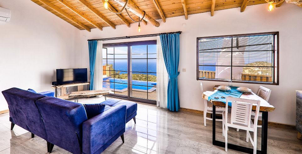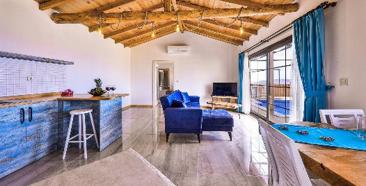 Salon : Villa Kitanik’in salonunda sizi şık bir oturma grubu ile klima, televizyon, internet, uydu, koltuk, sehpa ile ferah bir salon bekliyor olacaktır. Havuz terasına çıkış yapılmaktadır.