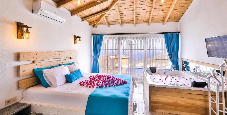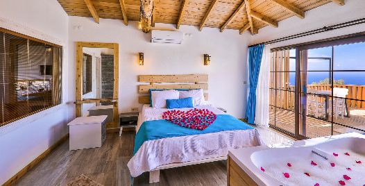 Kaş Gökseki bölgesinde yer almakta olan muhafazakar, kiralık, yazlık müstakil villamız ile huzurlu ve sakin bir tatil deneyimi gerçekleştirebilirsiniz. Yapımında ahşap kullanılan villamıza ağaç ev diyebiliriz ve kendinizi doğa ile içe hissedeceksiniz. Şüphesiz Kaş’ın en güzel manzarasına karşı olan son derece itina ile tasarlanmış, lüks, muhafazakar villamız 1 yatak odalı, muhafazakar çiftlerimizin tercih edeceği jakuzili balayı villasıdır. Doğa içerisinde sessiz – sakin ve kuş seslerinin hakim olduğu villamızda teras muhafazakar hale getirilmiştir. Her balayı çiftinin hayali olan bu tatil için özenle dizayn edilmiş Villa Kitanik lüks ama aynı zamanda ekonomi açısından her bütçeden ailelerimize uygundur. Seçeneklerimizden gözde olan villalarımızdandır ve sık tercih edilmektedir. Villamızı tercih eden çiftlerimizin son derece memnun kaldığını belirtmek ister, şimdiden keyifli tatiller dileriz.