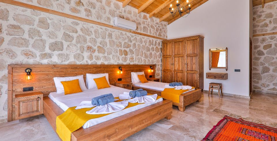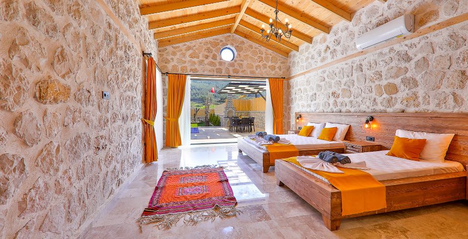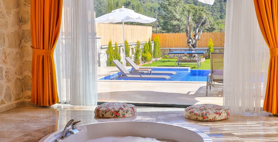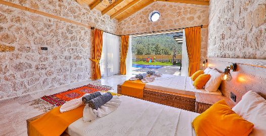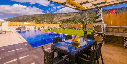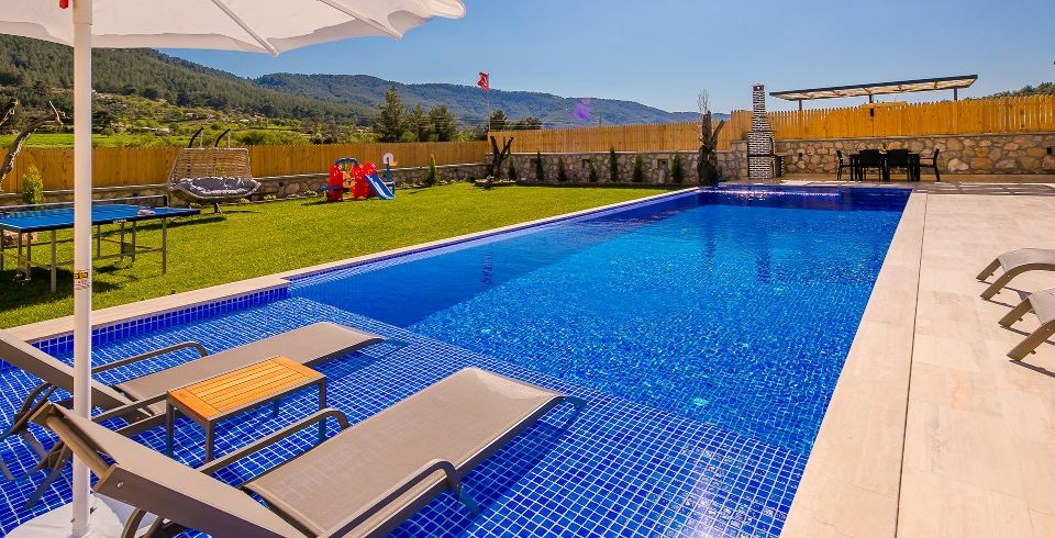 Kiralık yazlık villamız Sarıbelen mevkisin de konumlanmıştır. 2 yatak odalı 5 kişilik kapasiteye sahiptir. Yemyeşil geniş bahçe ile çevrili olan villamız havuz ve havuz terası muhafazakar konumdadır. Muhafazakar ve balayı çiftleri için harika tatil imkanı sağlanmaktadır. Özel yüzme havuzunda çocuk havuzu bulunmaktadır. Balayı süit odasında jakuzi diğer yatak odasında 1 adet çift kişilik 1 adet tek kişilik yatak bulunmaktadır. Doğa içerisinde olan villamız bahçesinde bir adet oyun parkı, salıncak, masa tenisi yer almaktadır. Villamızın taş ve ahşap işçiliği bir arada olup oldukça konforlu ve lüks döşemeler kullanılmıştır.