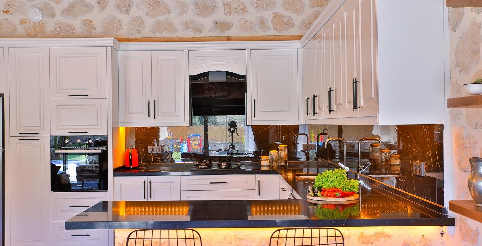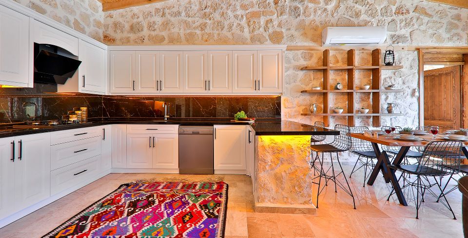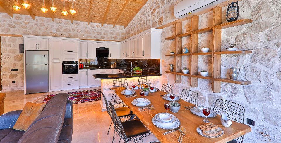 Mutfak : Villamızın mutfağında buzdolabı bulaşık makinası, çamaşır makınası,4 lü ocak, ketıl, 8 kişilik yemek takımı bulunmaktadır.