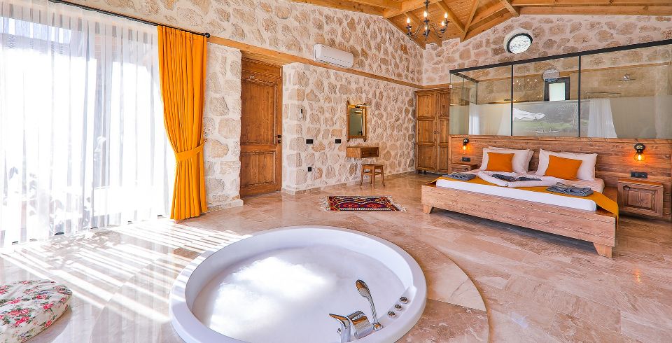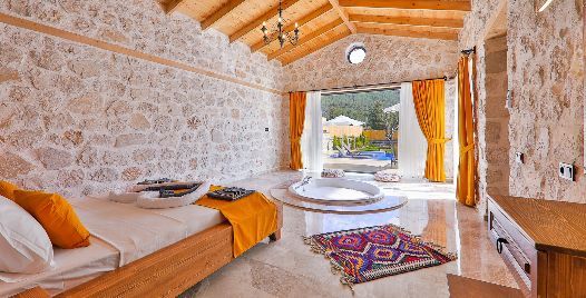 1. Yatak Odası : Çift kişilik yatak ,klima, jakuzi, komodin, elbise dolabı, makyaj masası banyo ve tuvalet bulunmaktadır.