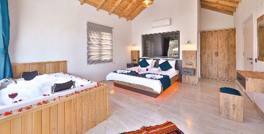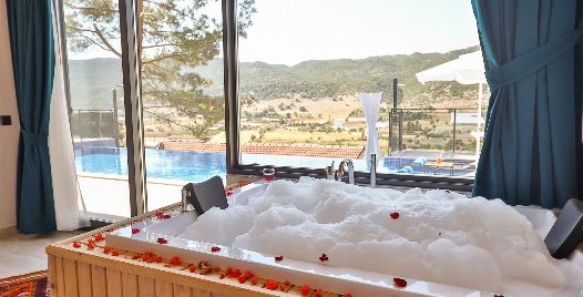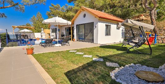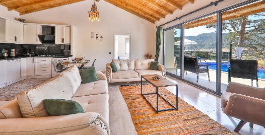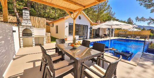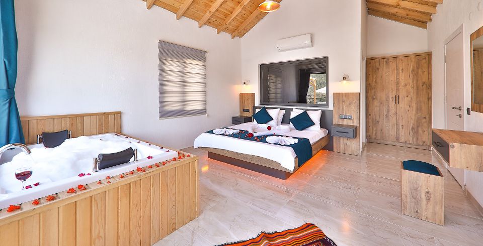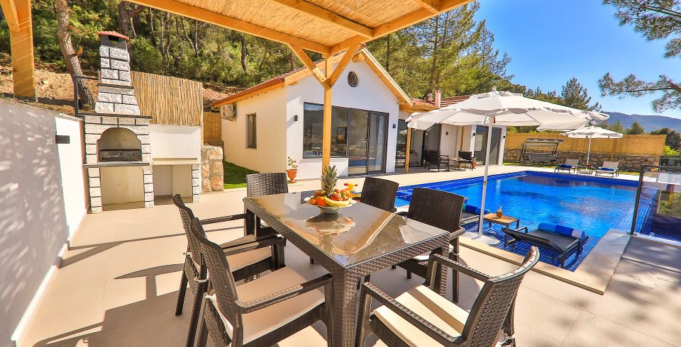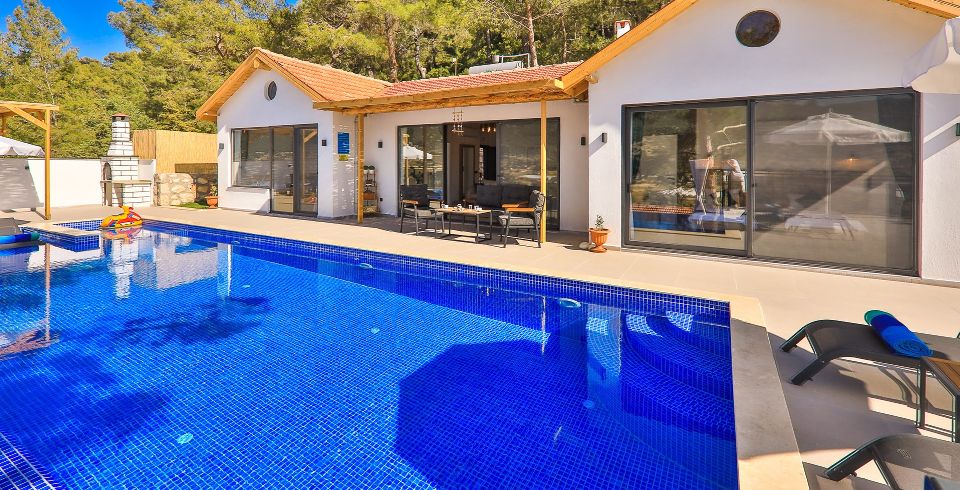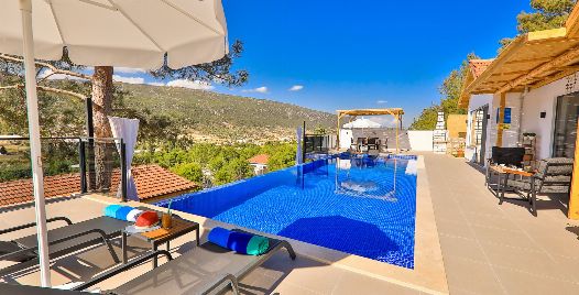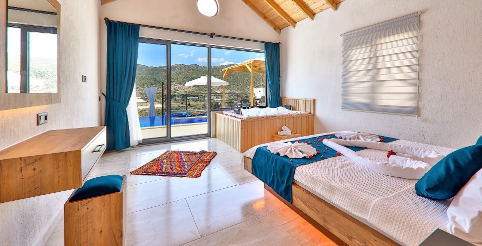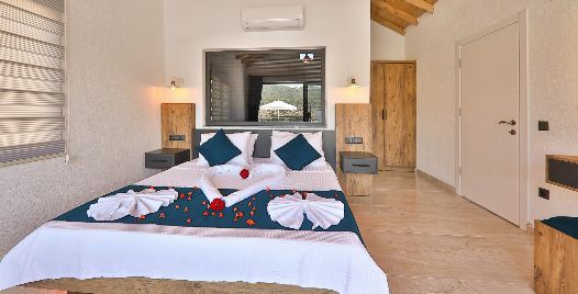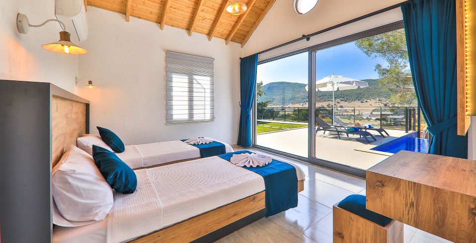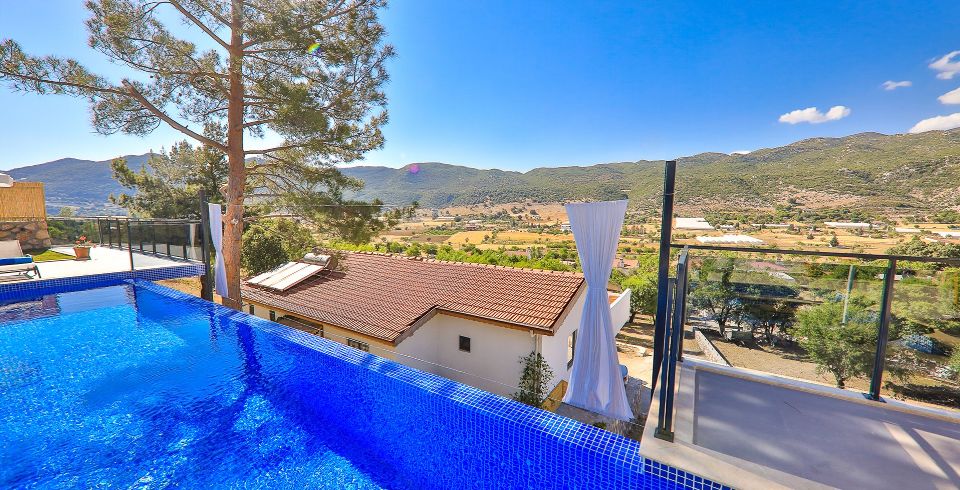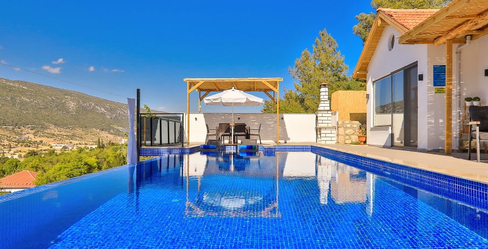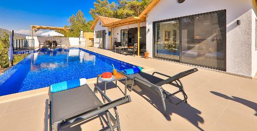 Kalkan Sarıbelen bölgesinde doğa manzarasına sahip 2 Yatak Odalı 4 Kişilik Özel Yüzme Havuzlu Muhafazakar Kiralık villamız 2021 yılında tamamlanmış olup yeni ve modern bir villamızdır. Balayı çiftleri ve çocuklu aileler için geniş havuz terasında ve geniş bahçe alanında sessiz ve sakin rahat bir tatil arzulayan misafirlerimiz için bu villa seçeneğimiz son derece yerinde bir karar olacaktır. Villamızın tüm yatak odalarından havuz terasına çıkış bulunmaktadır.