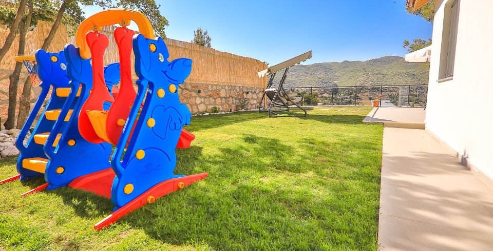 Bahçe : Bahçe içerisinde özel yüzme havuzu, 4 adet şezlong , bahçe mobilyaları, tenis masası , oyun parkı, ayaklı mangal bulunmaktadır.