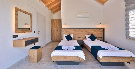 2. Yatak Odası : 2 adet tek kişilik yatak, klima, komodin, elbise dolabı, makyaj masası, banyo ve tuvalet bulunmaktadır.