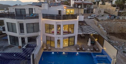 Kalkan Akbel’de bulunan Villa Kübra, doğa manzarasının yanında deniz manzarasına da sahiptir. 4 yatak odası bulunup her odaya özel banyosu bulunan bu şık dizayn edilmiş villamızın özel yüzme havuzu bulunmakla beraber korunaklı bir şekilde muhafaza edilmiştir. Manzaraya sıfır olan havuz size lüks içinde tatilinizi çıkarma imkanını size sunacaktır. Kalabalık aileler ve arkadaş grupları için ideal olan villamız. Havuz partileriniz için harika bir seçenek olan bu villa aynı zamanda çocuklu aileler için de ayrı bir çocuk havuzu bulunmaktadır. Minik müşterilerimizin rahat etmesi ve havuz keyfini çıkartması için özel olarak tasarlanmıştır. Aynı zamanda havuz içerisinde eşsiz Kalkan körfezine karşı keyif yapabileceğiniz bir jakuzide mevcuttur. Manzarası ve özel dizayn villamız ile harika bir tatil sizi bekliyor.