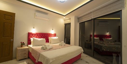2. Yatak Odası : Çift kişilik yatak, klima, komodin, elbise dolabı, makyaj masası, banyo ve tuvalet bulunur.