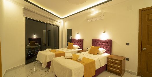 3. ve 4. Yatak odaları : Yine ikişer tek kişilik yataktan oluşur yine içerisinde elbise dolabı, komodin, her odamızda bulunan klima, makyaj masası ve ortak banyo ve tuvalet bulunur. Aynı zamanda bu odalardan balkona çıkış yapılabilir.