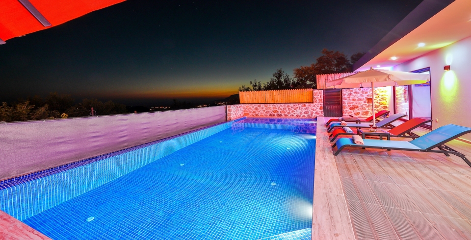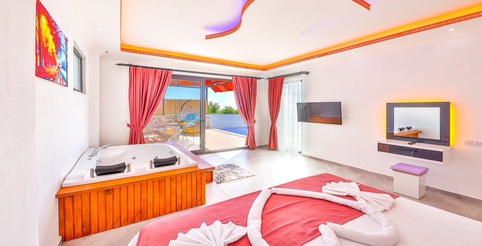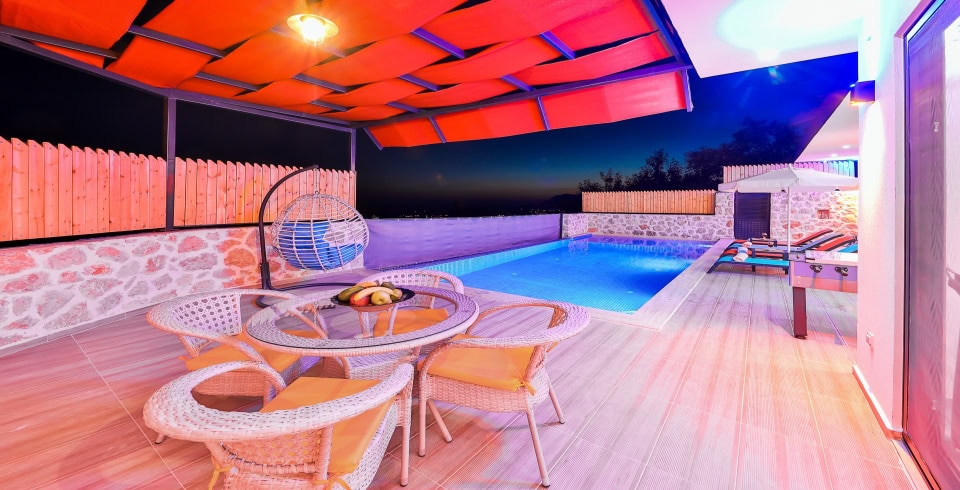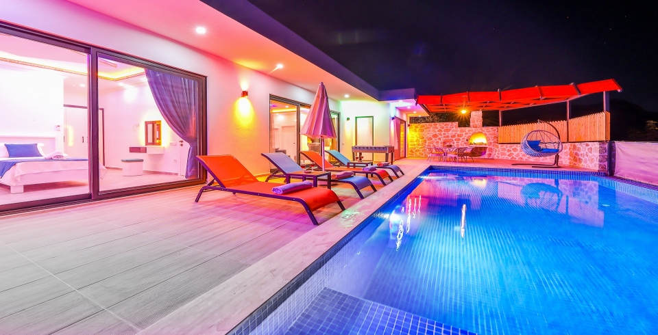 Villamız kalkan İslamlar bölgesine konumlandırılmış 2 yatak odalı 4 kişilik kapasiteye sahip muhafazakar balayı villasıdır. İçerisinde çift kişilik jakuzi bulunan villamız huzurlu bir tatil arayışı içerisinde olan siz değerli müşterilerimiz için son derece doğru bir seçim olacaktır. Villamızın havuz terasında bulunan langırt ile eğlenceli ve keyifli anlar geçirebilirsiniz.