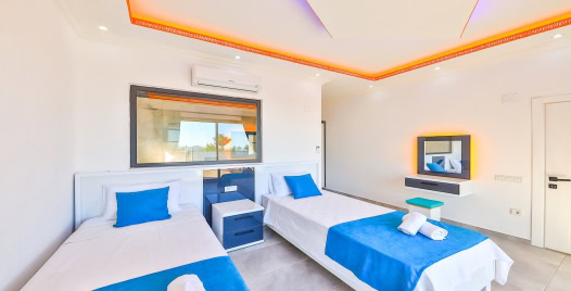 2. Yatak Odası : 2 adet tek kişilik yatak, Klima, komodin, elbise dolabı, makyaj masası, banyo ve lavabo bulunmaktadır.