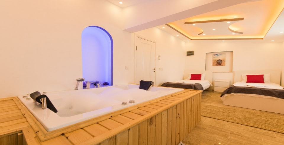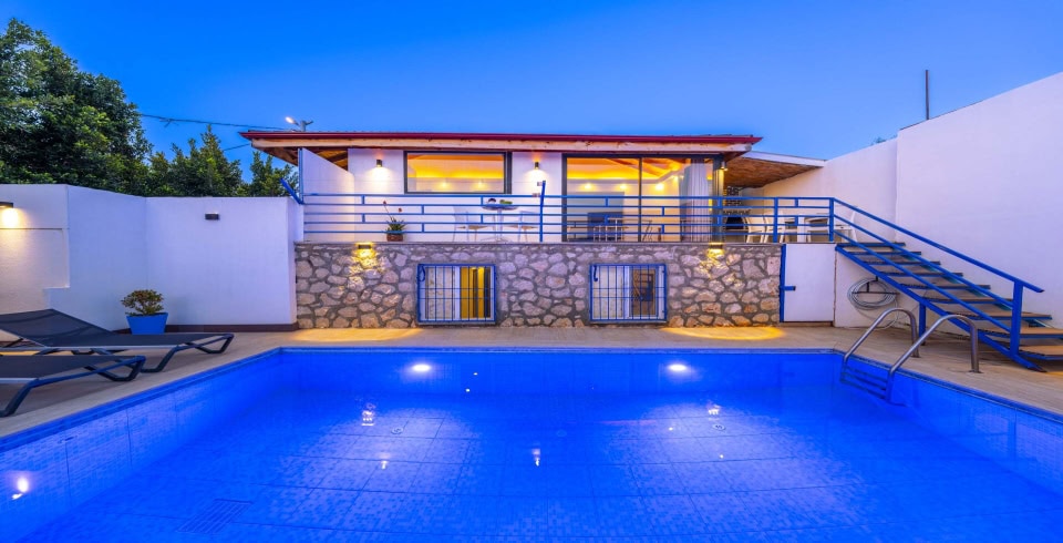 Villa Kutay, Kalkan Patara mevkiinde doğayla iç içe huzur dolu bir konumda yer alan, 4 kişi kapasiteye sahip lüks bir villadır. 2 yatak odası (biri çift kişilik, diğeri iki tek kişilik yatak), 4 banyosu ile gruplar ya da balayı çiftleri için ideal bir tercih sunar. Villada Türk hamamı, sauna, her iki yatak odasında jakuzi ve kapalı ısıtmalı havuz bulunmaktadır; havuz terası korunaklı şekilde tasarlanmış olup dışarıdan görünmezlik sağlar. Tam donanımlı Amerikan mutfak, geniş salon, klima, TV ve konforlu mobilyalar tatilinizi keyifli hale getirir.