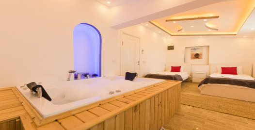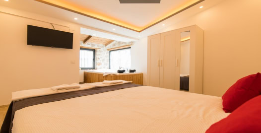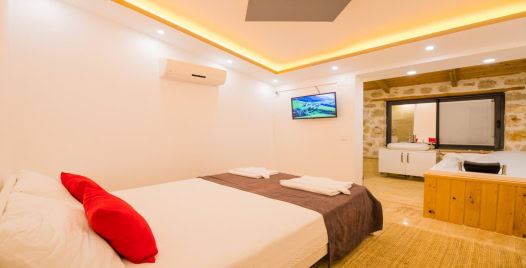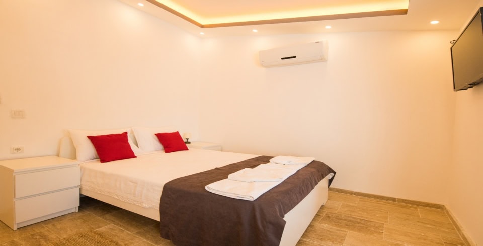 1.Yatak Odası: 1 adet çift kişilik yatak, elbise dolabı, komodin, klima, jakuzi, banyo ve lavabo bulunmaktadır.