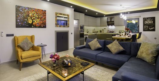 Salon : Salon içerisinde modern oturma grubu, uydu alıcı, LCD TV, internet için modem, klima, WC ve havuz terasına çıkış bulunmaktadır.