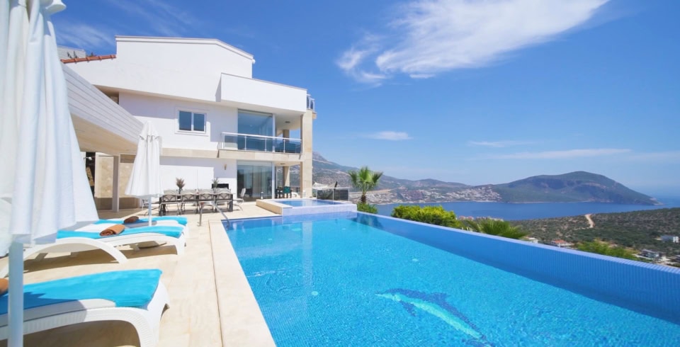 Kalkan kalamar koyu manzarasına sahip kiralık lüks tatil villalarımızdan bir tanesidir. Muhteşem deniz, doğa ve şehir manzarasına sahip villamızda her şey sizin için düşünülmüş sizin için sadece villamızı tercih etmeniz yeterli olacaktır. Büyük bir havuz ve havuz terasına sahip olan villamızda havuz başında jakuzi bulunmaktadır. 6 adet süit yatak odasına sahip villamızda 12 kişi konaklayabilmektedir. Ailenizle ve arkadaş grubunuzla unutulmaz bir tatil için muhteşem seçenek.