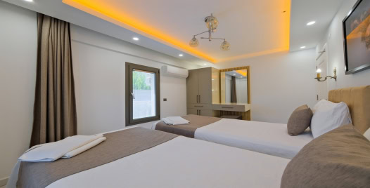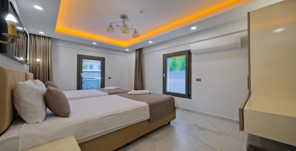 4. Yatak Odası : 2 adet tek kişilik yatak, klima, komodin, elbise dolabı, makyaj masası bulunmaktadır.