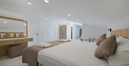 3. Yatak Odası : 1 adet çift kişilik yatak, klima, komodin, elbise dolabı, makyaj masası bulunmaktadır.