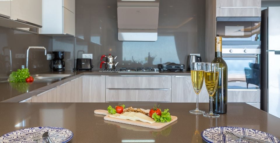 Mutfak : Buzdolabı, Bulaşık makinesi, Fırın, mikrodalga fırın, 4’lü Ocak (ankastre), çamaşır makinası, Elektrikli su ısıtıcı, Ekmek kızartma makinesi, 8 kişilik yemek takımı, Tava, Tencereler, Çatal bıçak vb.