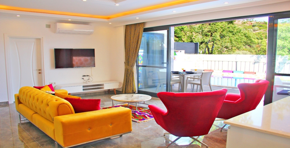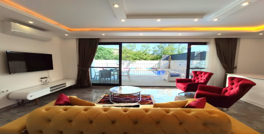 Salon : Oturma grubu, TV, sehpa, klima, internet bulunmaktadır.
