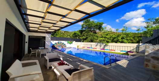 Havuz ve Bahçe : Villamızın özel yüzme havuzu, salıncak , şezlong, barbekü, yemek masası bulunmaktadır.