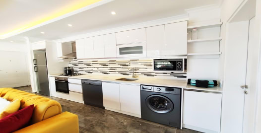 Mutfak : Şirin ve kullanışlı modern bir mutfağa sahip villamızın mutfağında buzdolabı, bulaşık makinası, su ısıtıcısı, tost makinası, çamaşır makinası, çaycım, mikro dalga, fırın,4'lü ankastre ocak ve mutfak araç ve gereçleri bulunmaktadır.