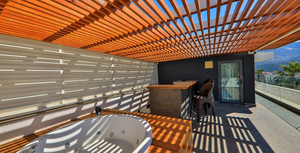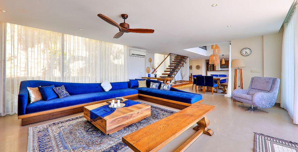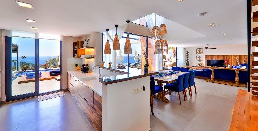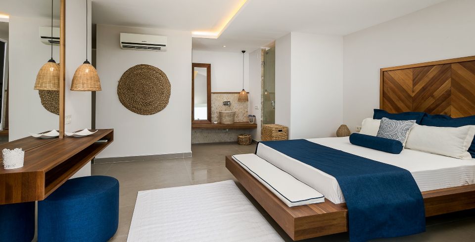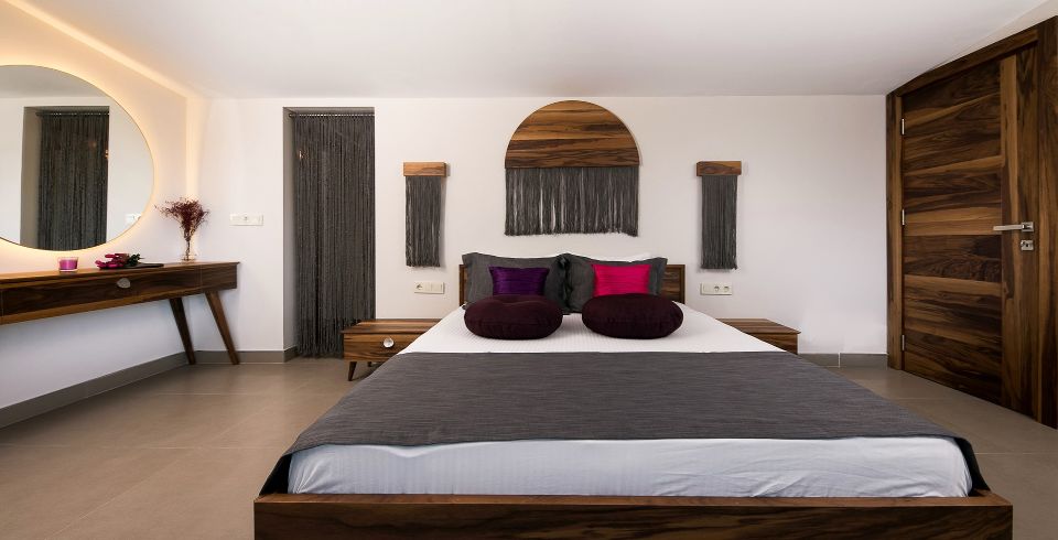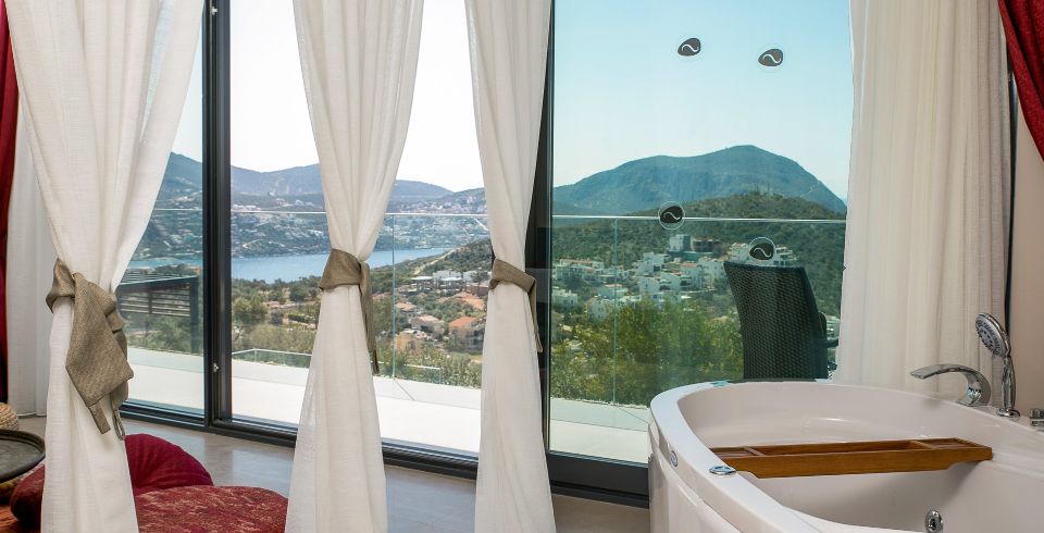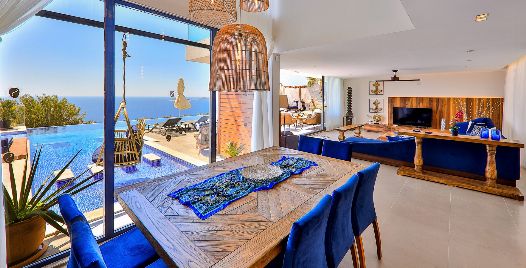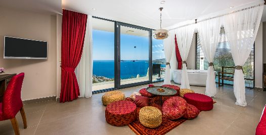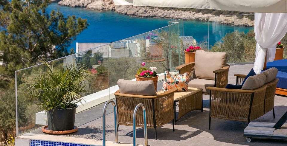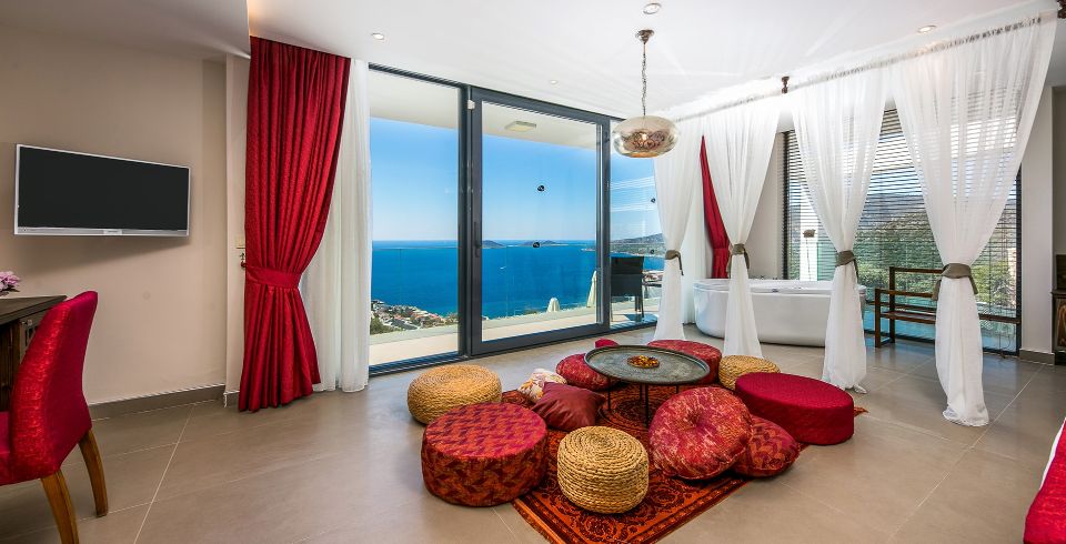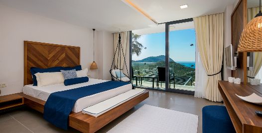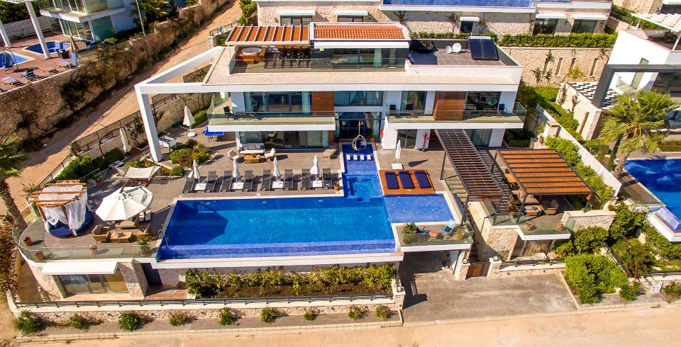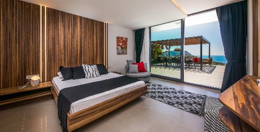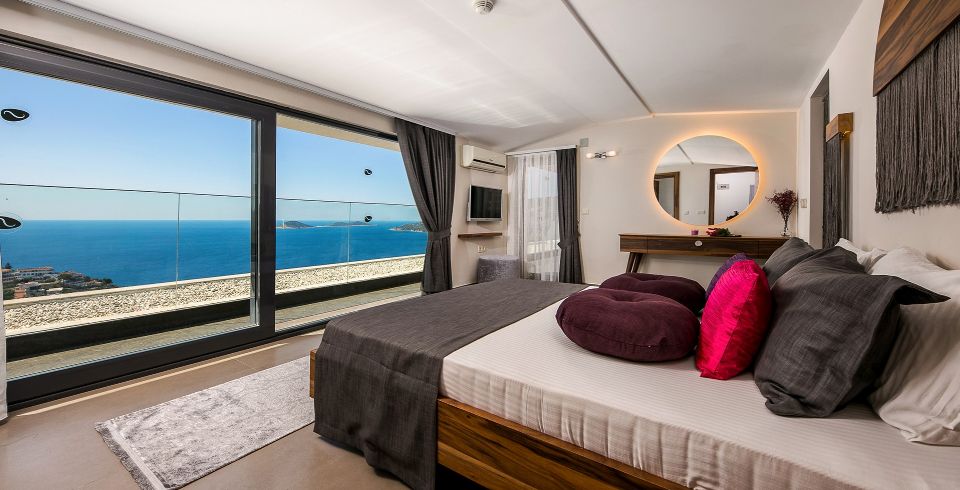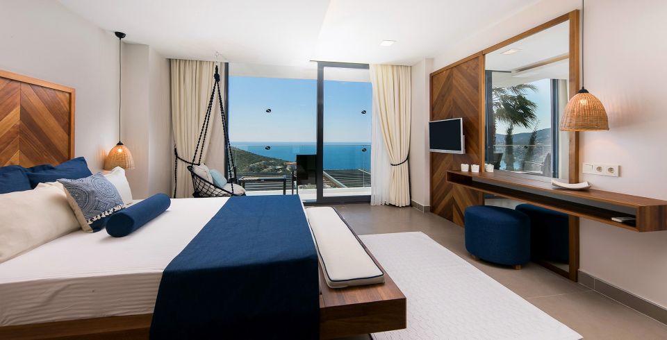 Bu lüks deniz manzaralı kiralık villa, 5 yatak odalı olup 10 kişilik konaklama kapasitesine sahiptir. Hem kalabalık arkadaş grupları için ideal hem de geniş aileler için uygun bir villadır. Villamızdan tüm plajlara ulaşım yürüyüş mesafesinde de bulunsa da coğrafi yapısından dolayı araçlar ile sağlanmaktadır.