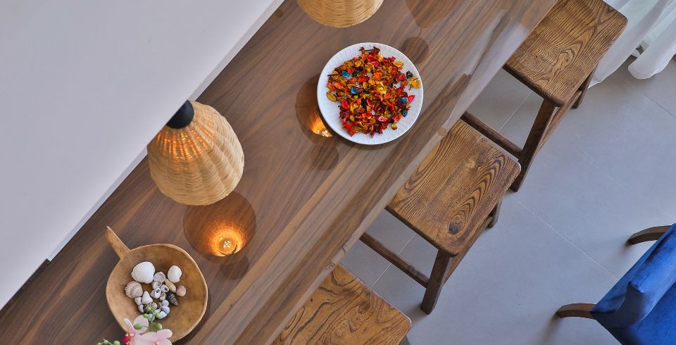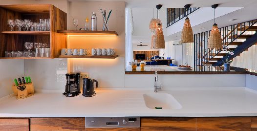 Mutfak : Villa Elmas içinde modern Amerikan mutfak bulunmaktadır. Mutfakta mikrodalga fırın, bulaşık makinası, ankastre fırın, buzdolabı, çamaşır makinası, ankastre 4’lü ocak, elektrikli su ısıtıcı kettle, ekmek kızartma makinası, tencere ve tava takımı, 10 kişilik yemek takımı, kaşık ve çatal seti ve bardaklar bulunmaktadır. Havuz başına geçiş bulunmaktadır.
