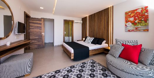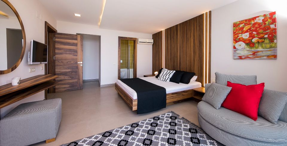 5. Yatak Odası : Süit yatak odası çift kişilik konfor yatak, klima, makyaj masası, gardırop, banyo-WC ve balkon yer almaktadır.