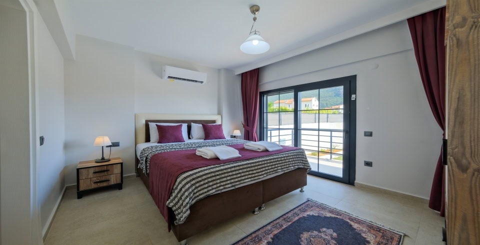 2. Yatak Odası : 1 adet çift kişilik yatak, klima, komodin, elbise dolabı, banyo ve tuvalet bulunmaktadır.