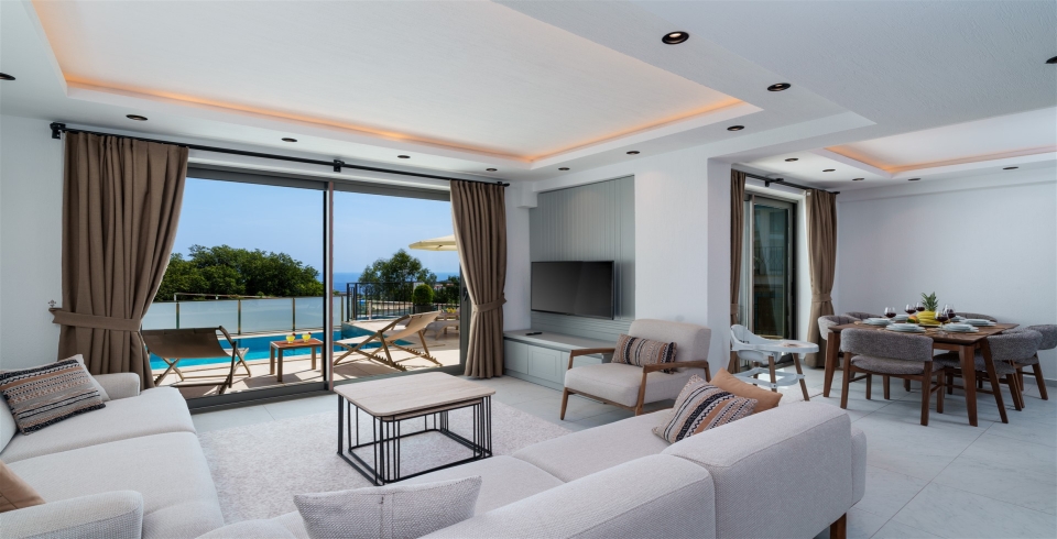 Şehir merkezine yakın konumuyla dikkat çeken villa, market, restoran, kafe ve plajlara sadece birkaç dakikalık mesafede yer alır. Aynı zamanda etkileyici Akdeniz manzarası eşliğinde huzurlu ve izole bir tatil atmosferi sağlar. Gün batımını keyifle izleyebileceğiniz geniş terası, modern ve şık mobilyalarla döşenmiş iç mekânı ve ferah yaşam alanlarıyla her detayda konfor ön planda tutulmuştur.