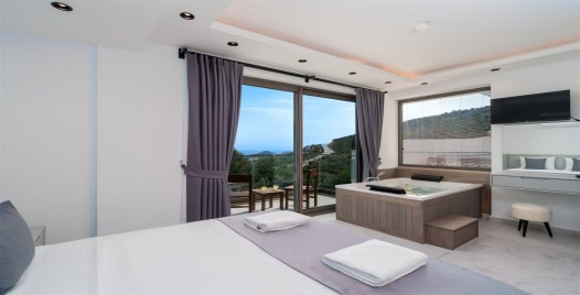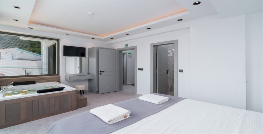 1. Yatak Odası: 1 Çift Kişilik Yatak, Jakuzi, Banyo/WC, TV.
