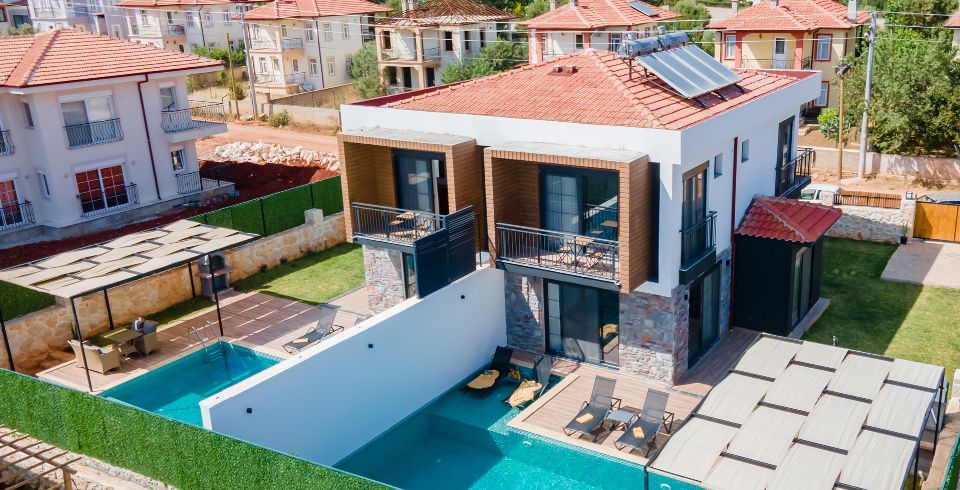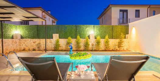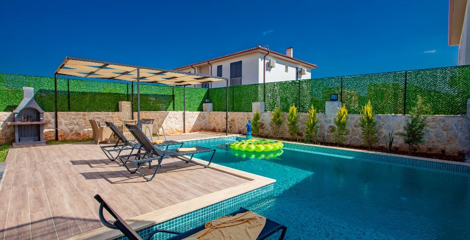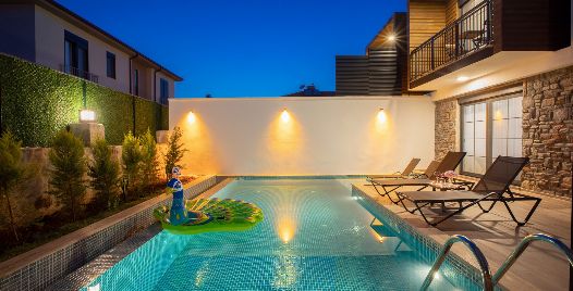 Havuz ve Bahçe : Bahçe içerisinde özel yüzme havuzu, şezlonglar, güneş şemsiyesi, bahçe mobilyaları, salıncak, barbekü bulunmaktadır.