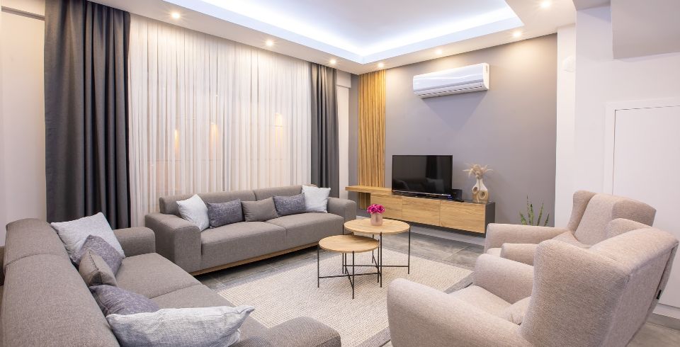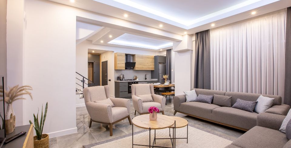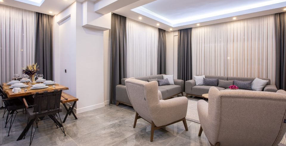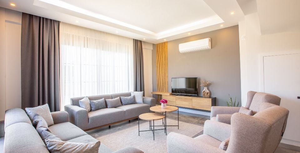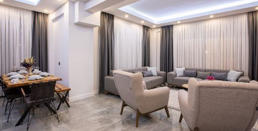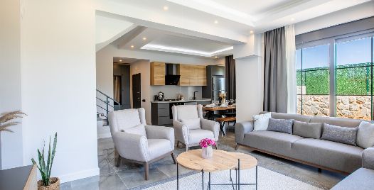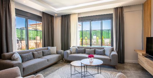 Salon : Salon içerisinde oturma grubu, TV, klima, sehpa bulunmaktadır. Havuz terasına çıkış ayrıca salon kısmında ortak kullanım tuvalet bulunmaktadır