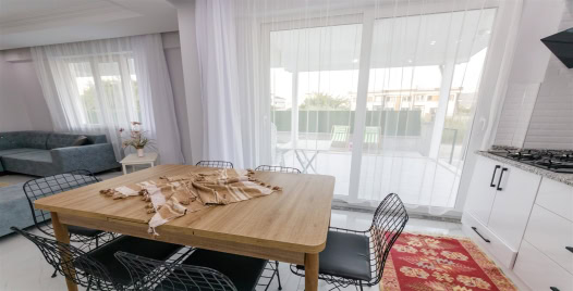 Mutfak : Yemek masası, buzdolabı, bulaşık makinası, fırın, ocak, mikrodalga fırın, yemek takımları, çatal ve bıçak takımları, tencere ve tava takımları, bardaklar bulunmaktadır.