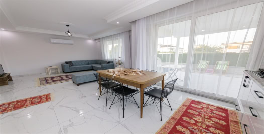 Salon : Salon içerisinde oturma grubu, TV, klima, sehpa bulunmaktadır. Havuz terasına çıkış yapılabilmektedir.