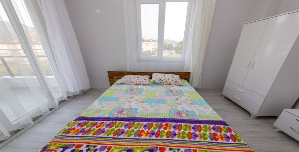 2. Yatak Odası : 1 adet çift kişilik yatak, klima, komodin, elbise dolabı, 2. ve 3. odanın tuvalet banyosu ortak kullanımdır, tuvalet banyo 2. katta odaların bulunduğu katta yer almaktadır.
