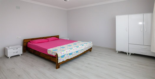 3. Yatak Odası : 1 adet çift kişilik yatak, klima, komodin, elbise dolabı, 2. ve 3. odanın tuvalet banyosu ortak kullanımdır, tuvalet banyo 2. katta odaların bulunduğu katta yer almaktadır.