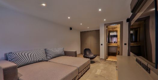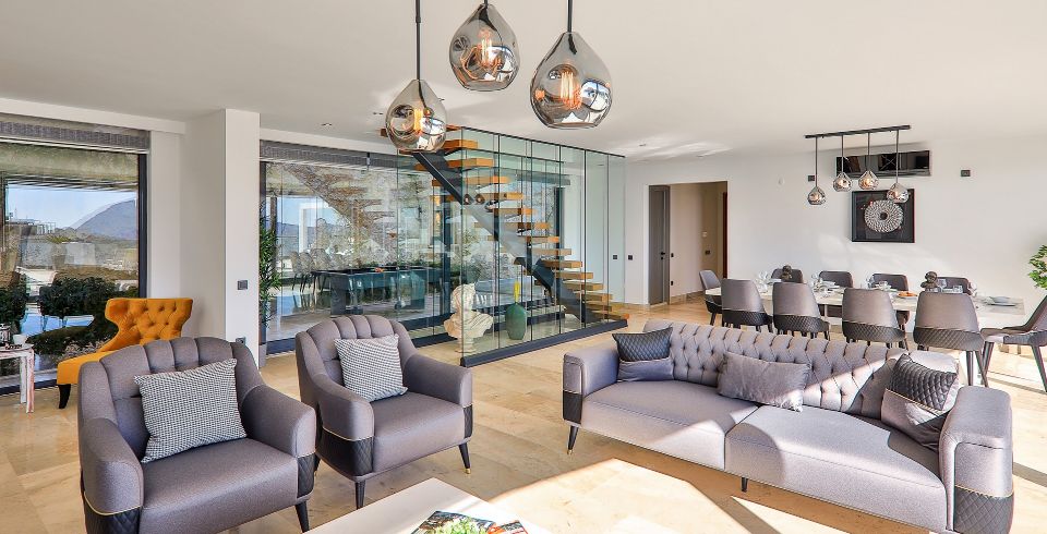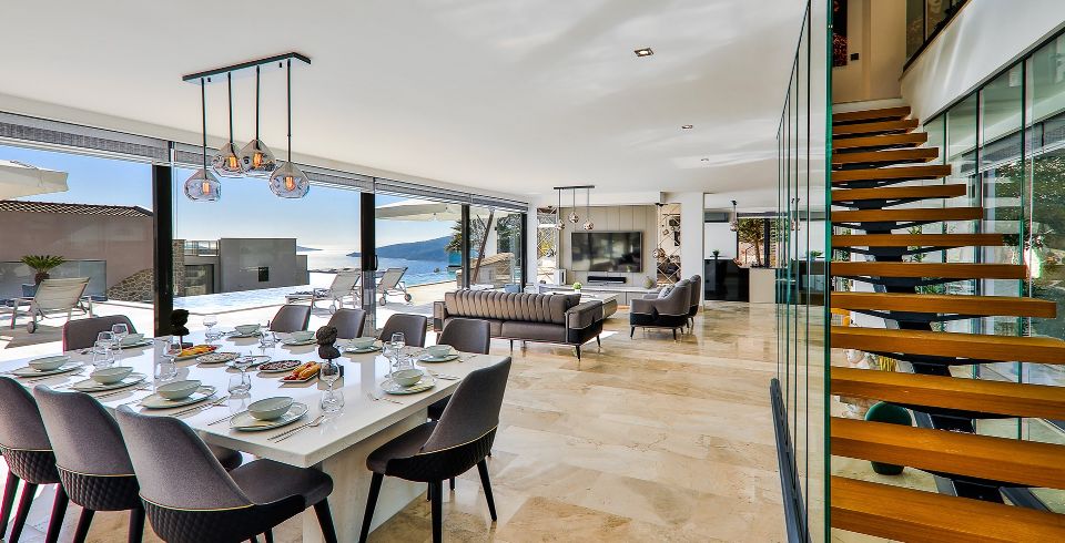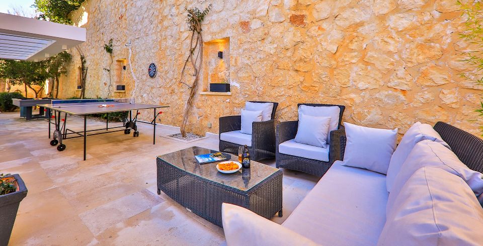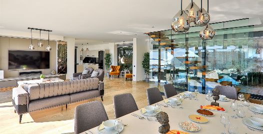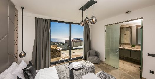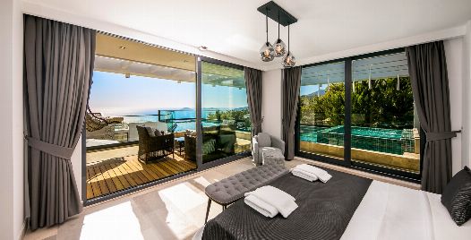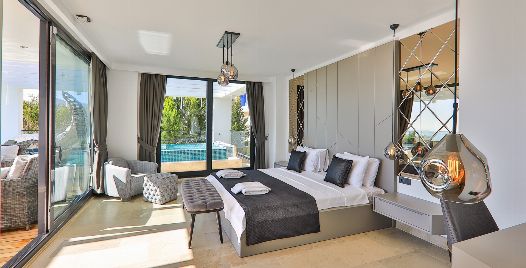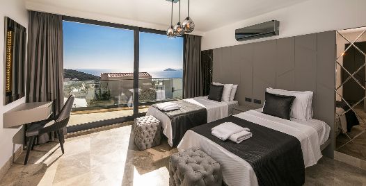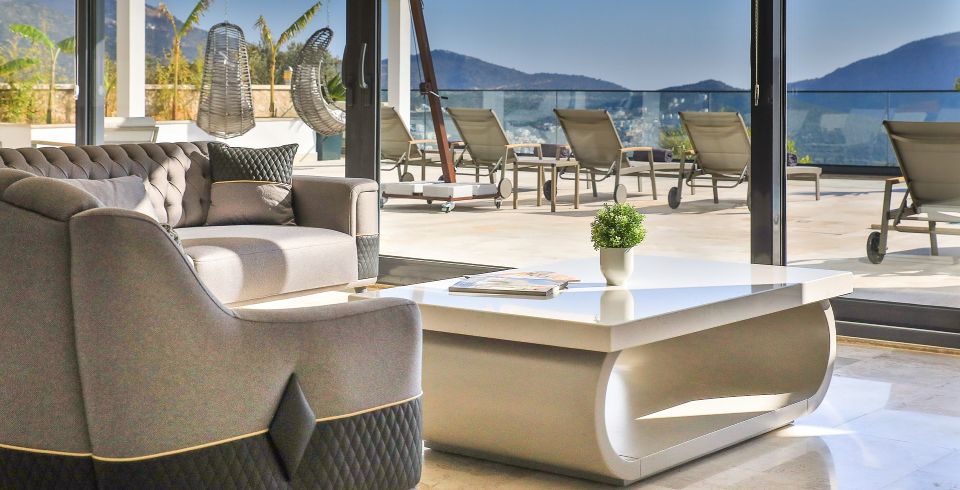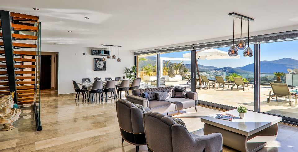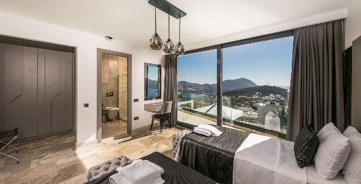 Salon : Havuz deniz ve doğa manzaralı salonda , oturma grubu, uydu TV (LCD), kablosuz internet, klima, banyo ve tuvalet bulunmaktadır. Salondan havuz terasına direkt çıkış bulunmaktadır