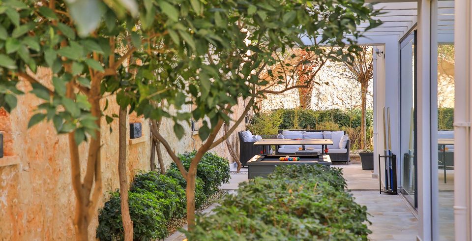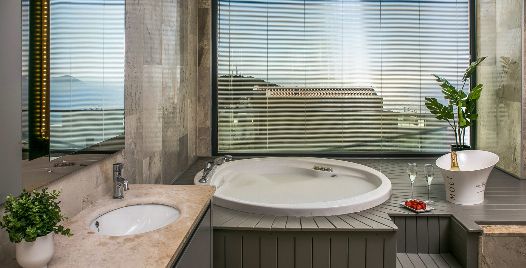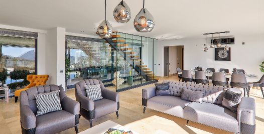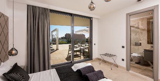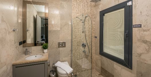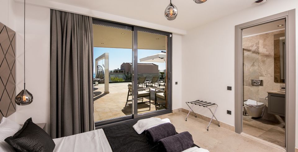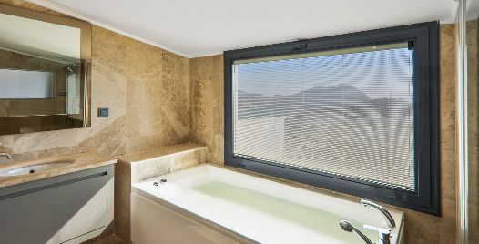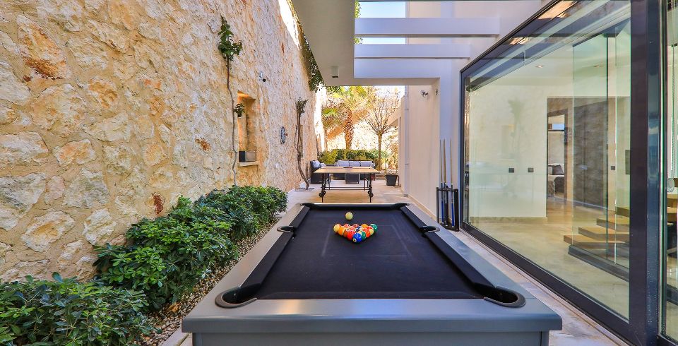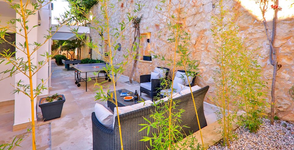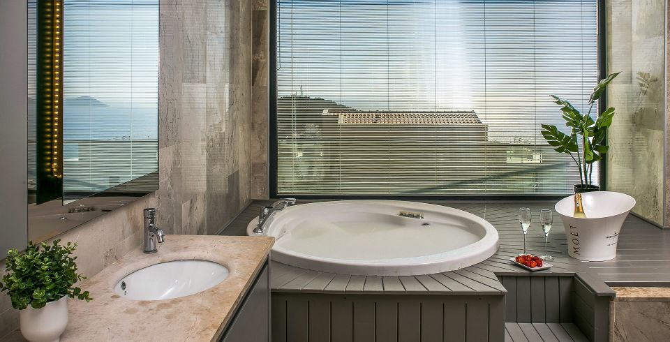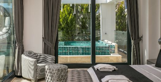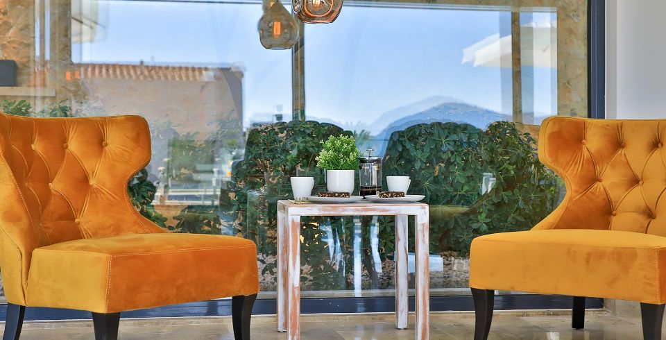 Salon : Havuz deniz ve doğa manzaralı salonda , oturma grubu, uydu TV (LCD), kablosuz internet, klima, banyo ve tuvalet bulunmaktadır. Salondan havuz terasına direkt çıkış bulunmaktadır