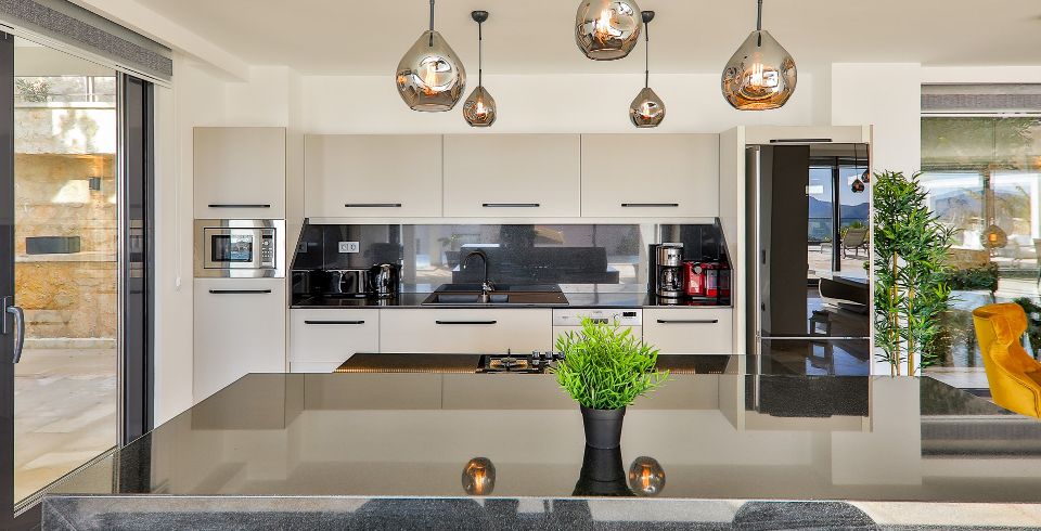 Mutfak : Amerikan tarzı mutfak içerisinde buzdolabı, bulaşık makinesi, çamaşır makinesi, fırın, kahve makinesi, 4’lü ocak (ankastre), ekmek kızartma makinesi, mikrodalga fırın, elektrikli su ısıtıcı, su sebili tava & tencere vb. mutfak ekipmanları ve 12 kişilik yemek takımı bulunmaktadır.