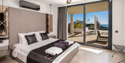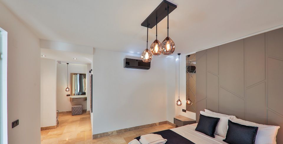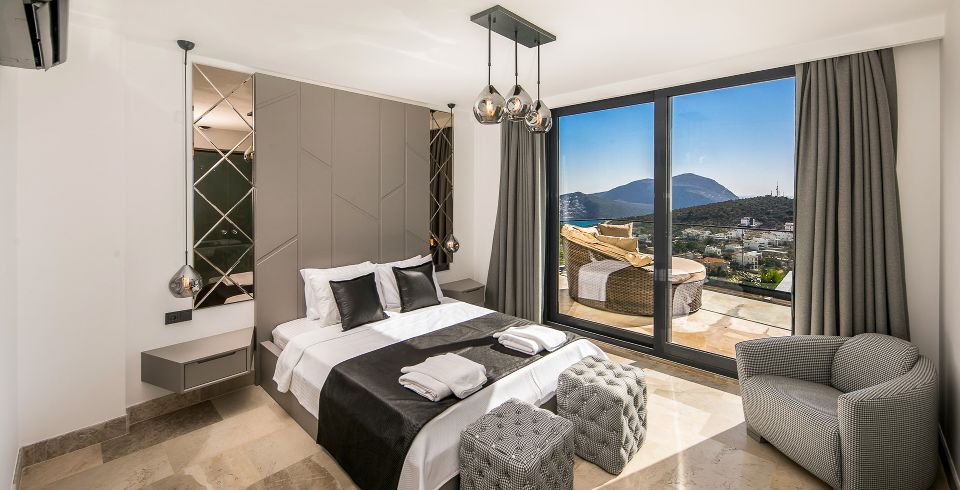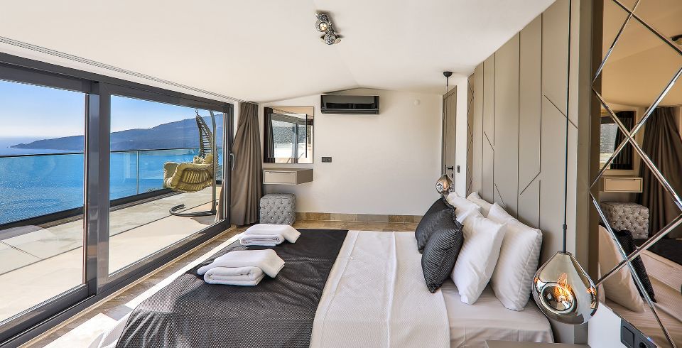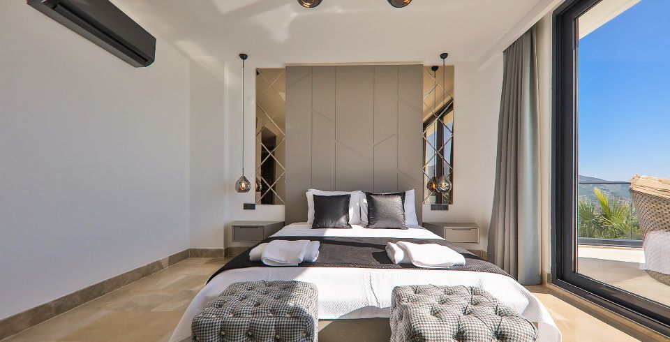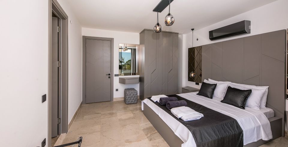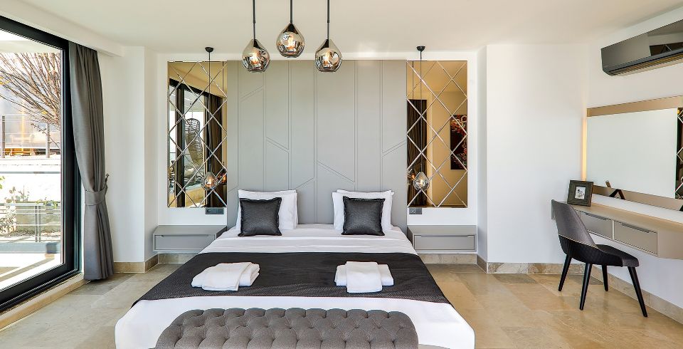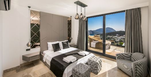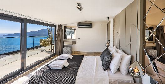 5. Yatak Odası : Çift kişilik yatak, klima, komodin, makyaj masası, elbise dolabı, banyo ve tuvalet bulunmaktadır. 2. katta Deniz Manzaralı Balkonu mevcuttur.